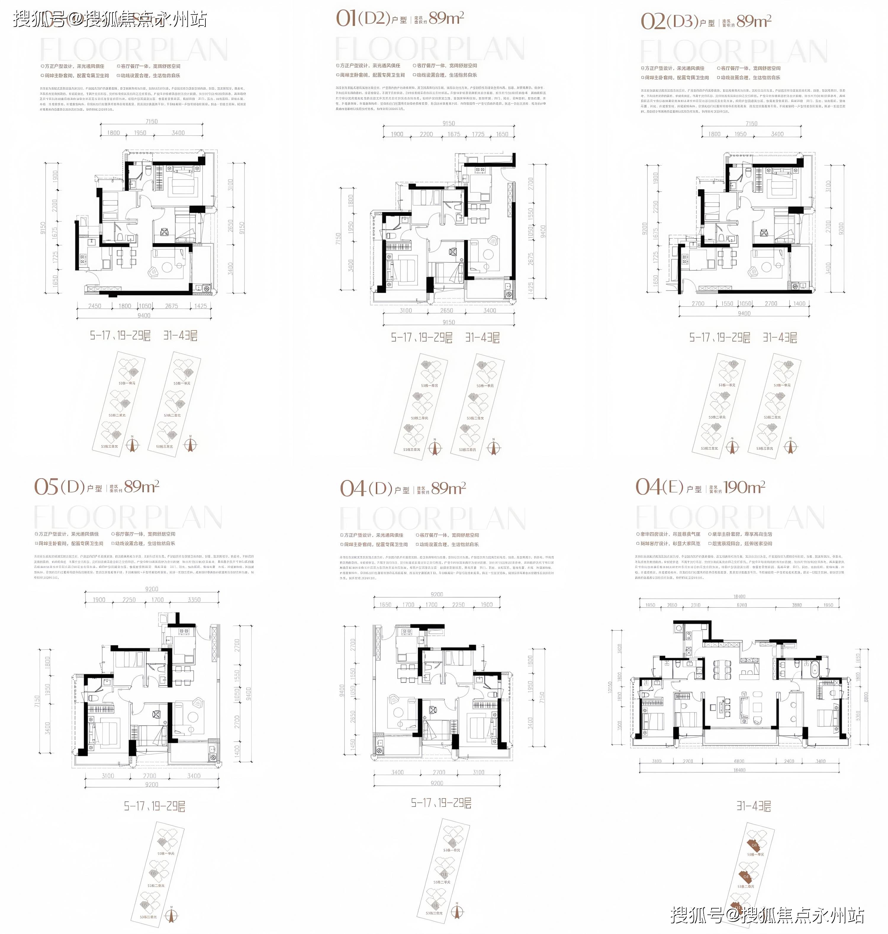 之前加推的小户型还剩下少量房源可间接认购(89㎡-190㎡、A户型 285㎡、89-190㎡3-4房,楼栋布局均为中低区3T5,高区3T4,高度为43F。户型有约89㎡三房二卫,高区有约190㎡四房三卫,由两个D户型归并而成。